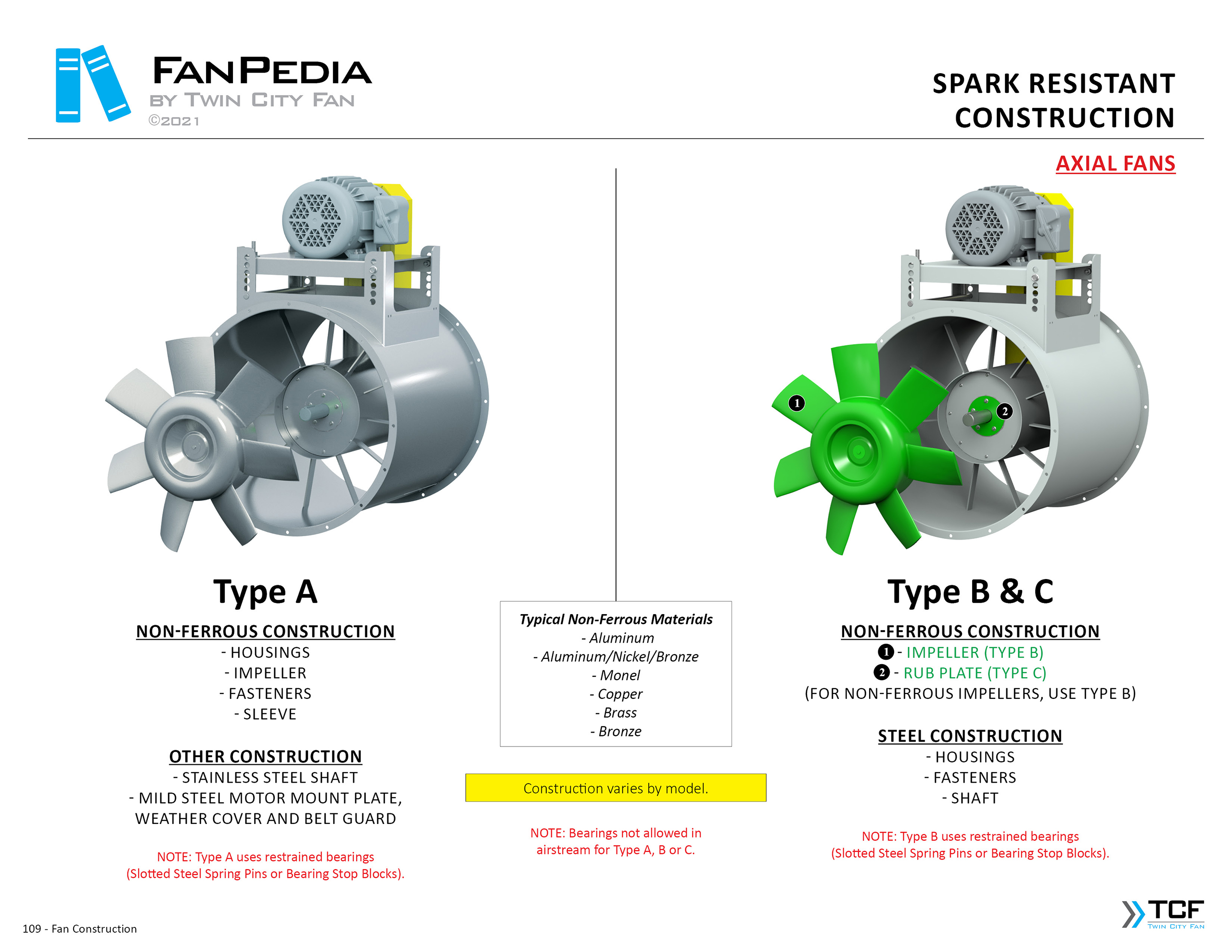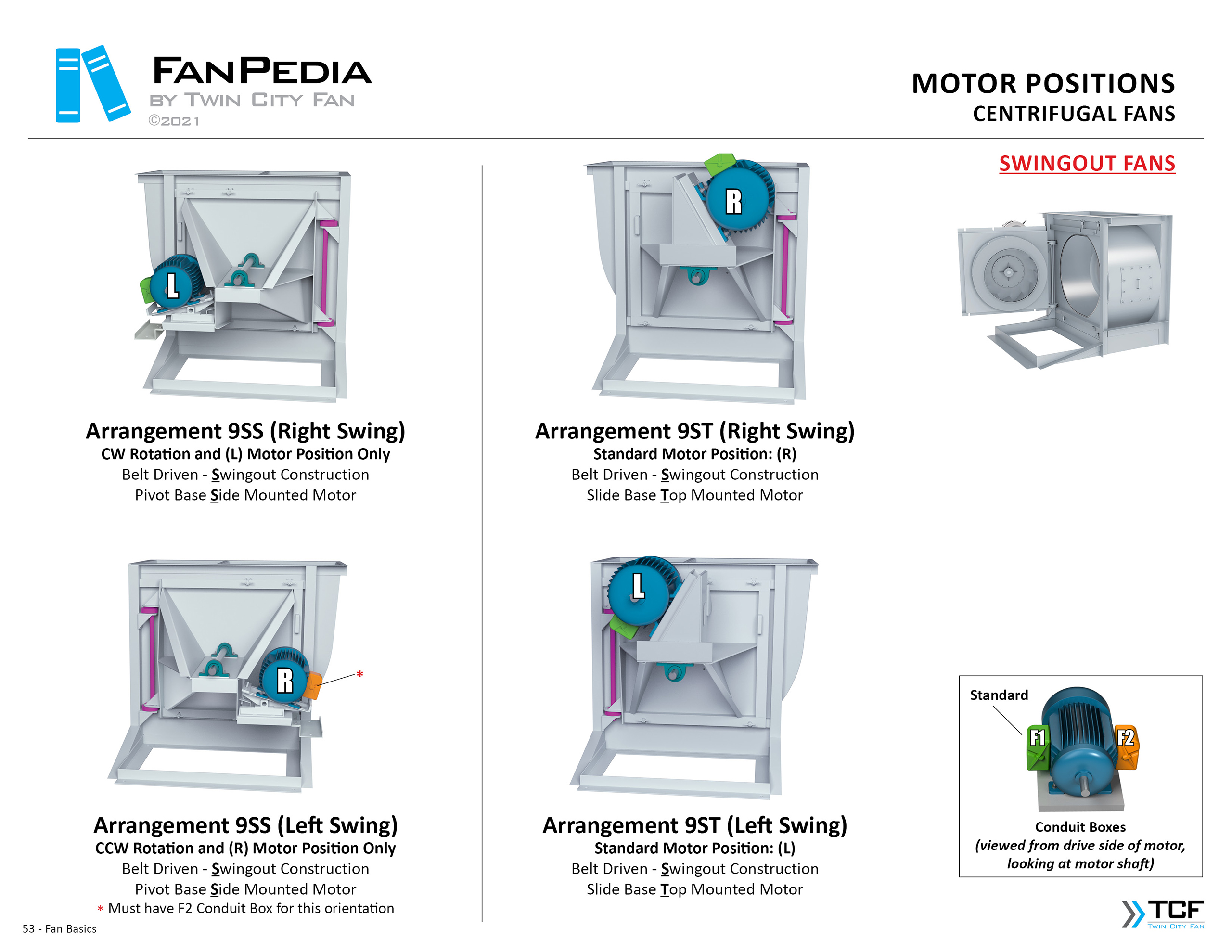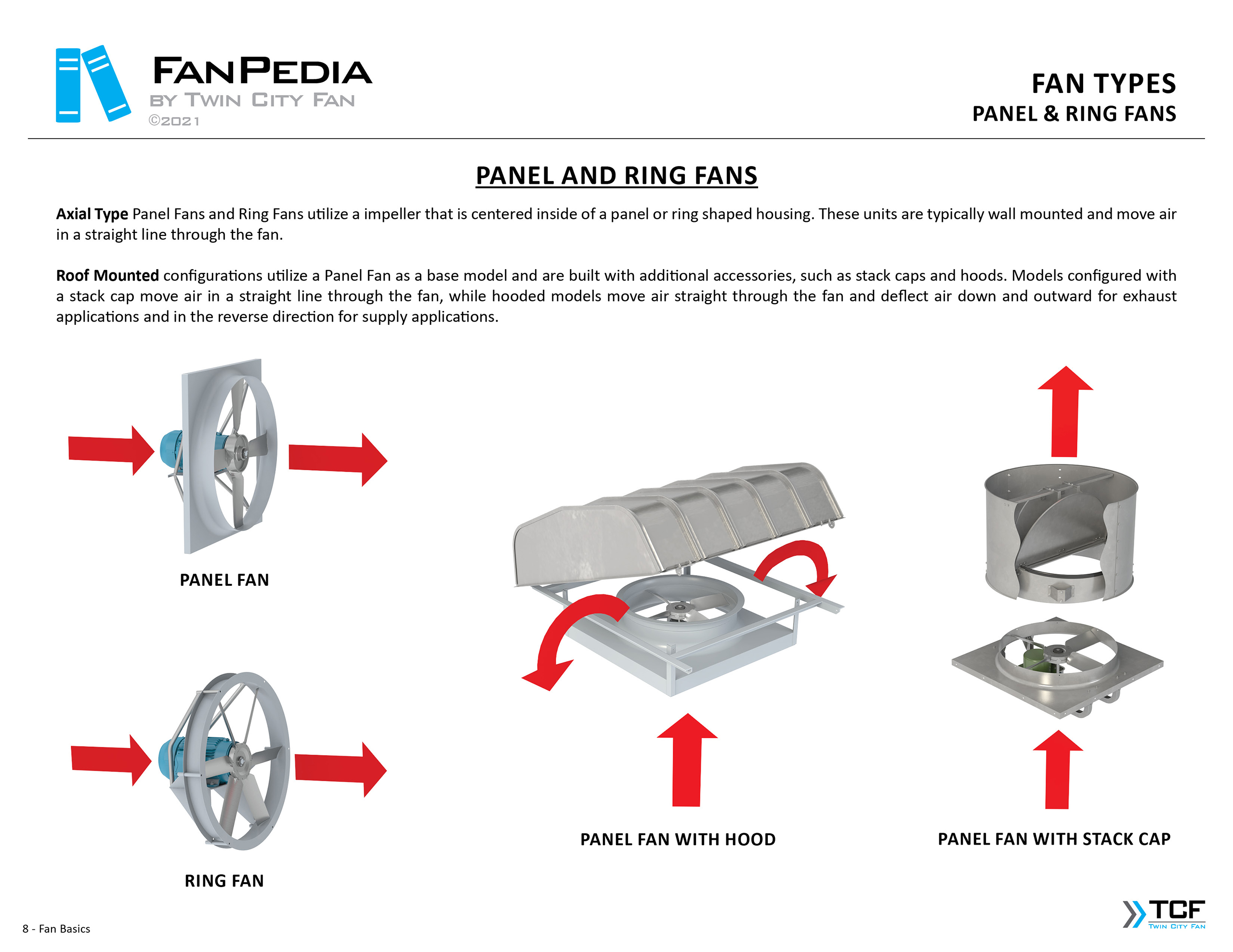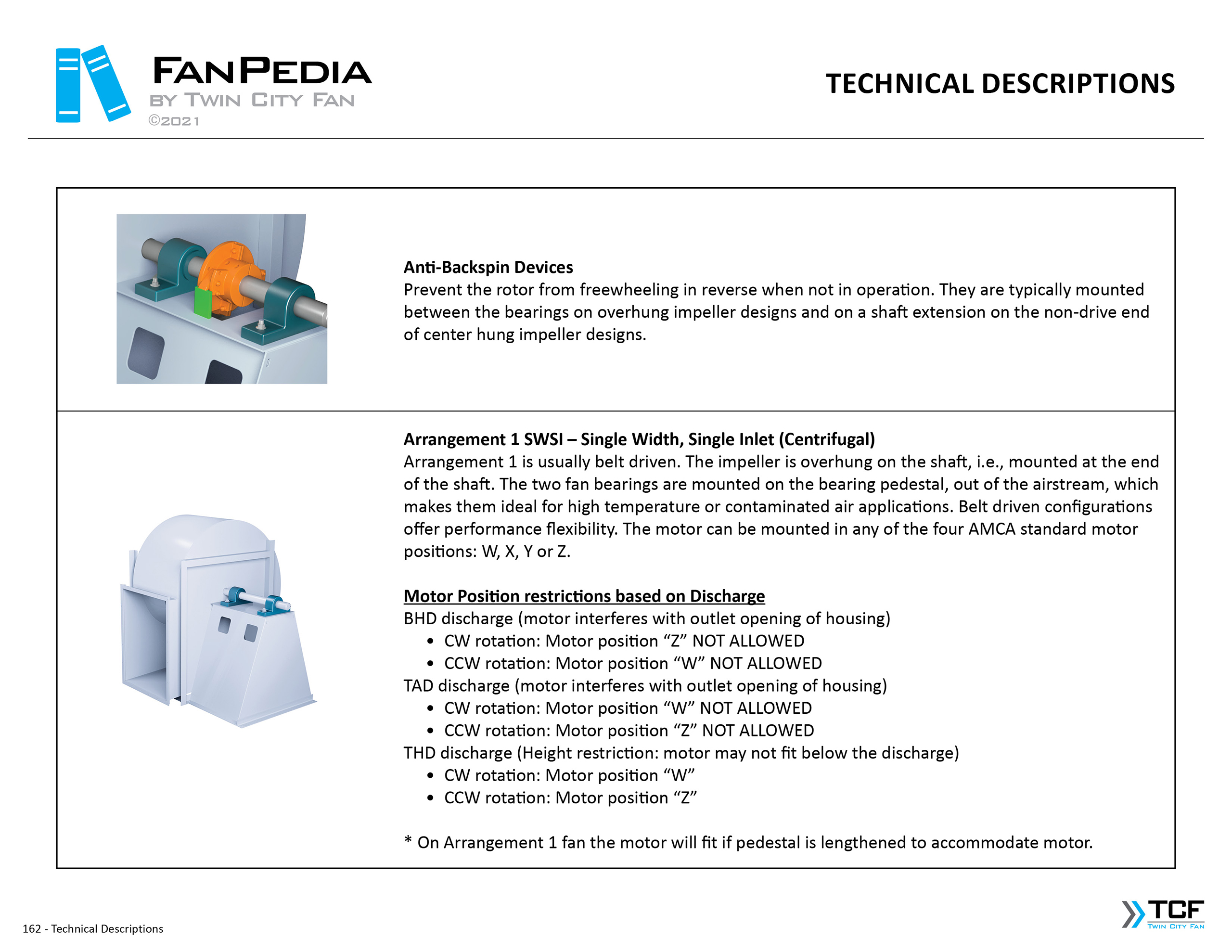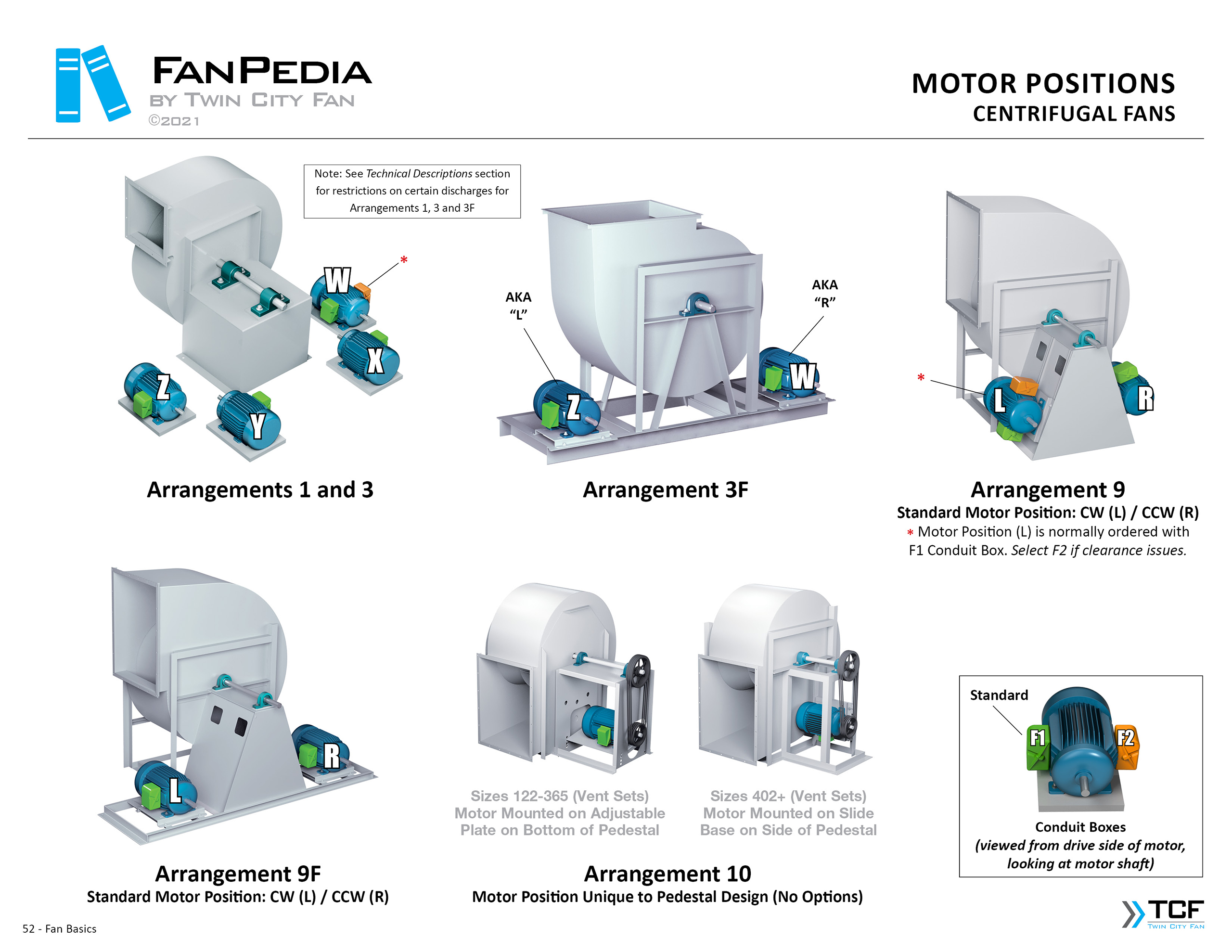 FanPedia The Fan & Blower Encyclopedia (click on thumbnails to view image galleries) Fan Basics Fan Types Exploded Views Fan Arrangements Impeller Types, Impeller Orientation & Hub Types Discharges & Impeller Rotation Impeller Airflow & Rotation (Axial Fans) Motor Positions Fan components Housing Construction Motors Motor Bases Shafts Pedestals Inlet Funnels / Venturis (Centrifugal) Bearing Types, Accessories & Modifications Fan Construction Spark Resistant Construction High Temperature Construction Insulated Fans Nominally Leak-Tight Construction RTO Construction High Moisture Construction Swingout & Clamshell Construction Fan Accessories Common Accessories Shafts Pedestals Base Types Vibration Isolation Dampers Inlet Vanes Grounding Devices Inlet Boxes Evasés Drain & Weep Holes Motor Positioners Shaft Seals Split Housings Piezometer Rings Technical Descriptions
